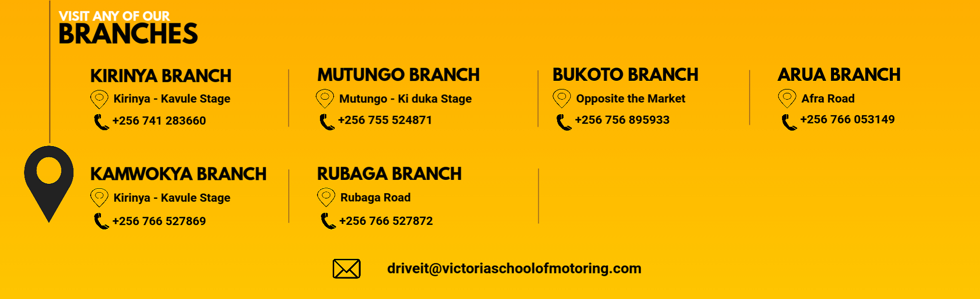 Victoria School of Motoring is a licensed professional school of motoring by ministry of works and transport of the government of the republic of Uganda.Started way back in 2014, the school was primarily established to address the problem of road accidents caused by ill trained drivers and the school strives to equip drivers with professional and contemporary driving skills both practical and theoretical.